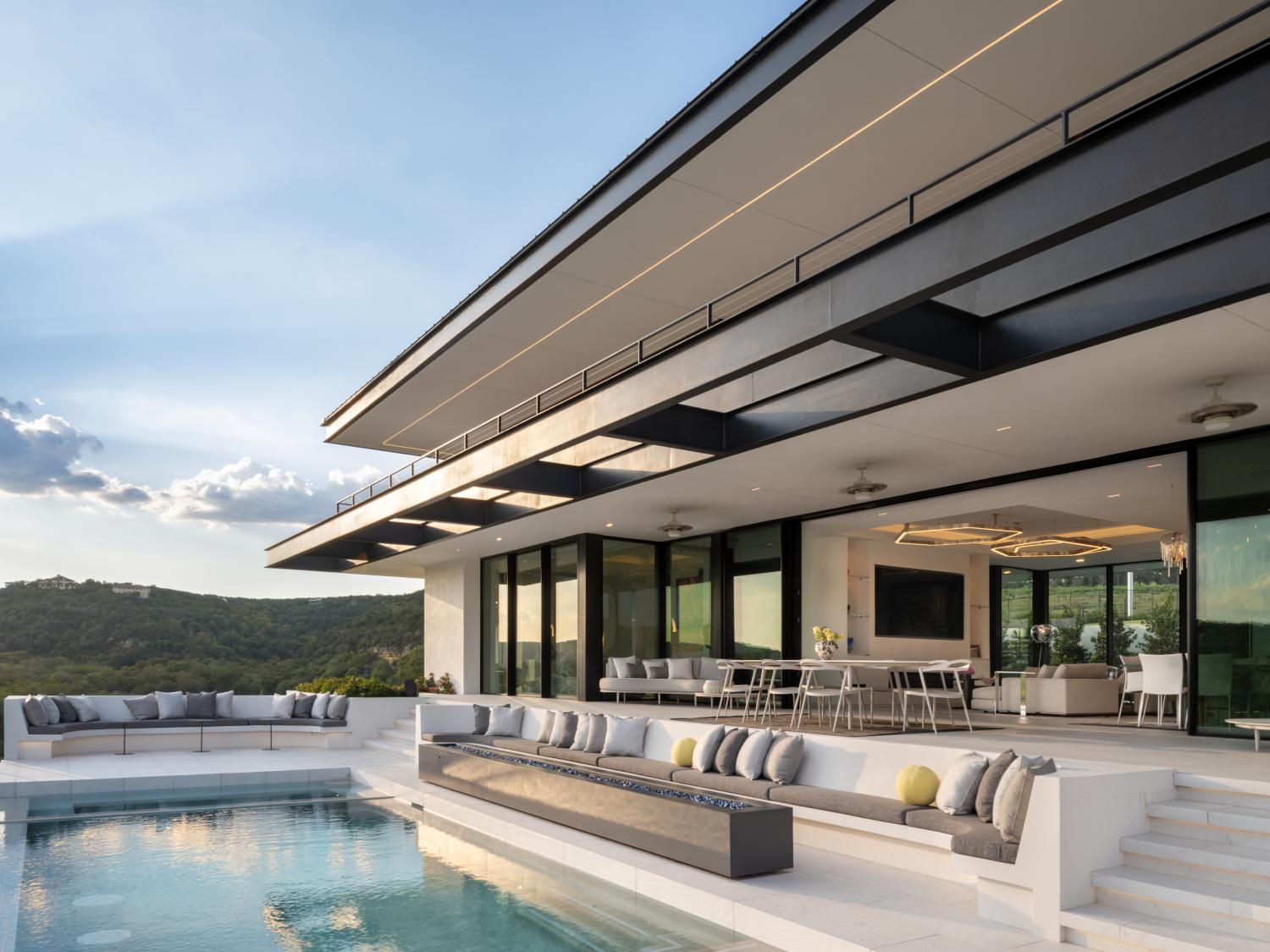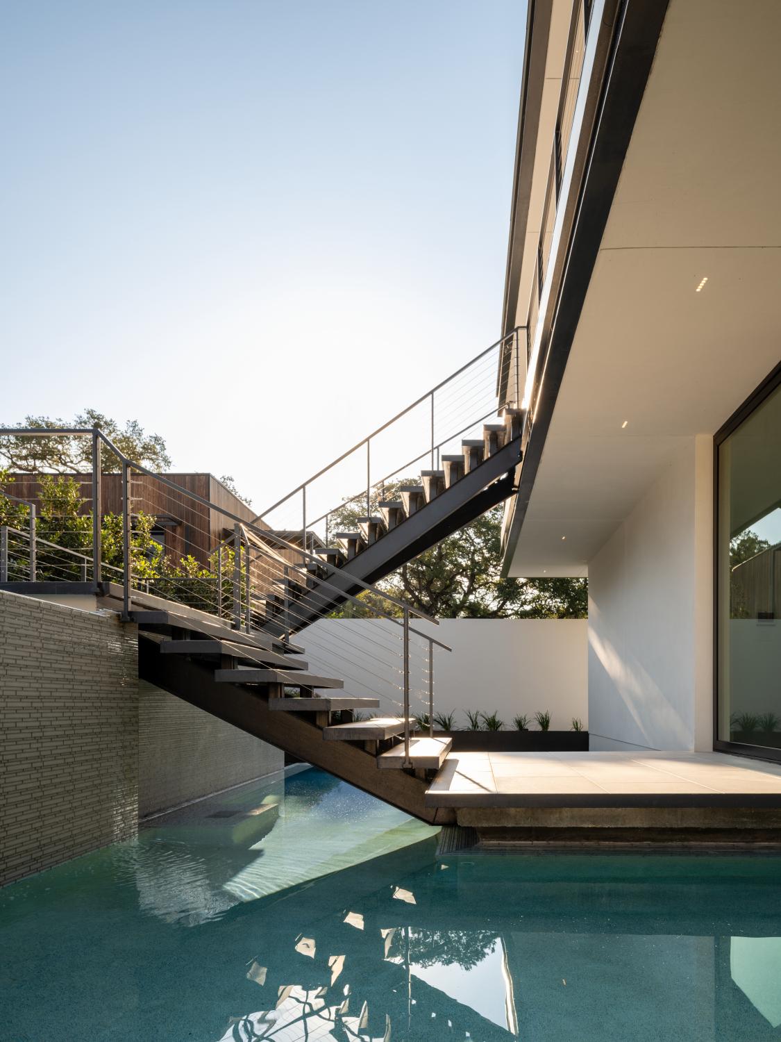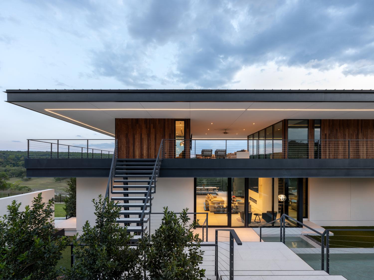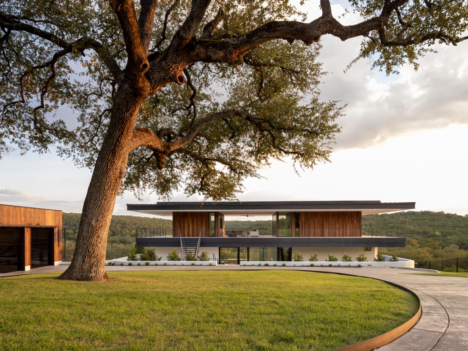 Custom home built on a 200 acre ranch on a bluff high above the Blanco river, just outside of Wimberley, TX. We were responsible for the full structural steel build, all interior and exterior stairs and railings, all steel landscaping elements, and all metal accent work.