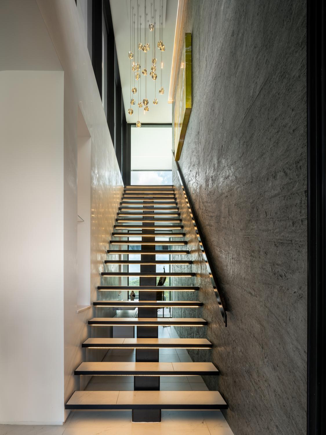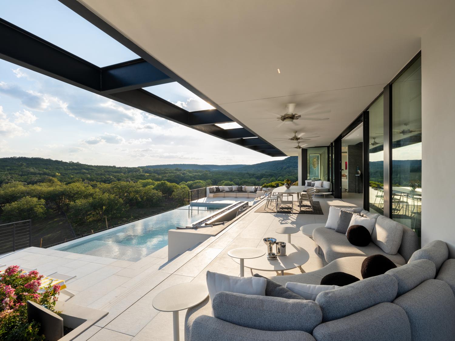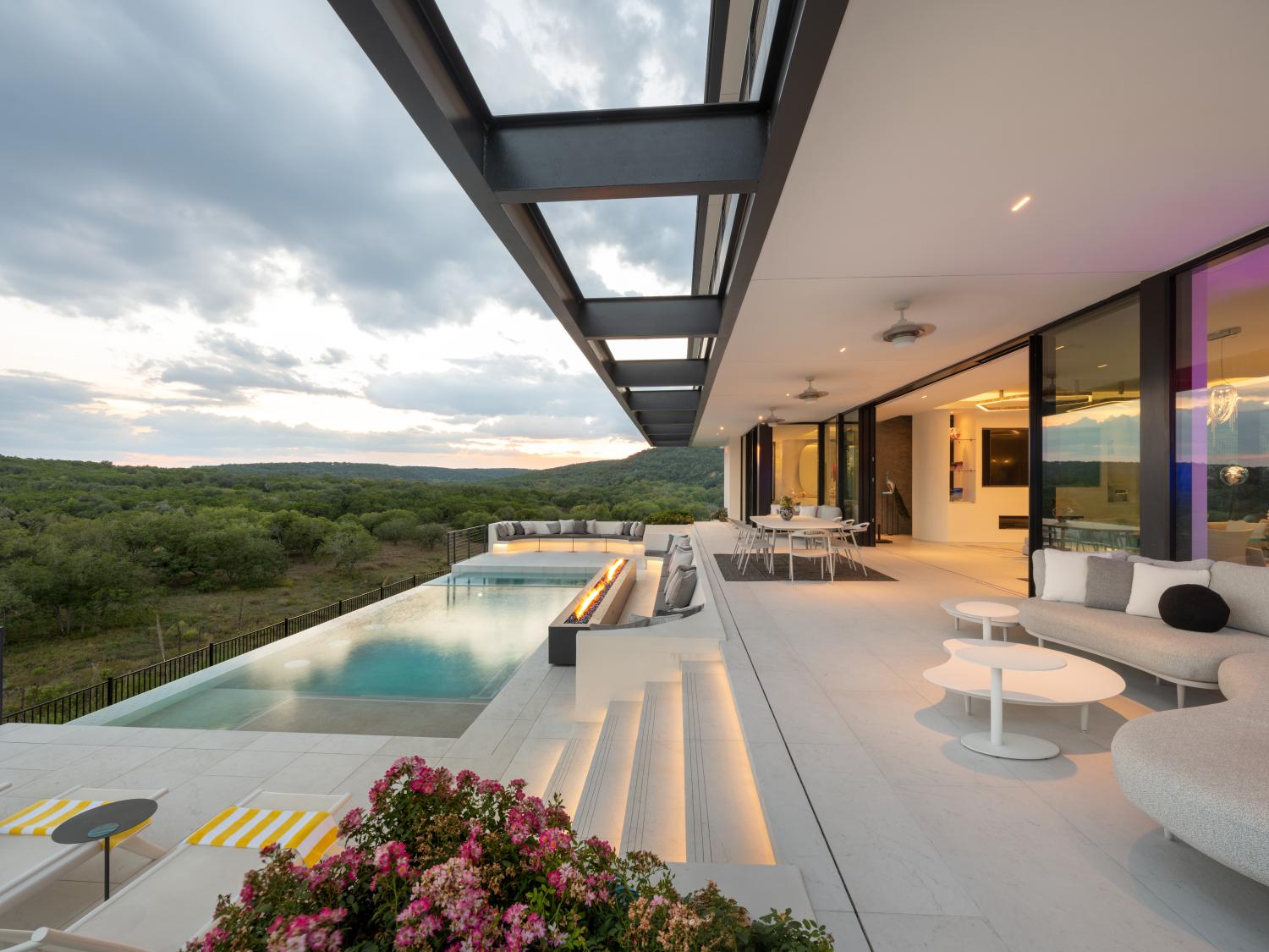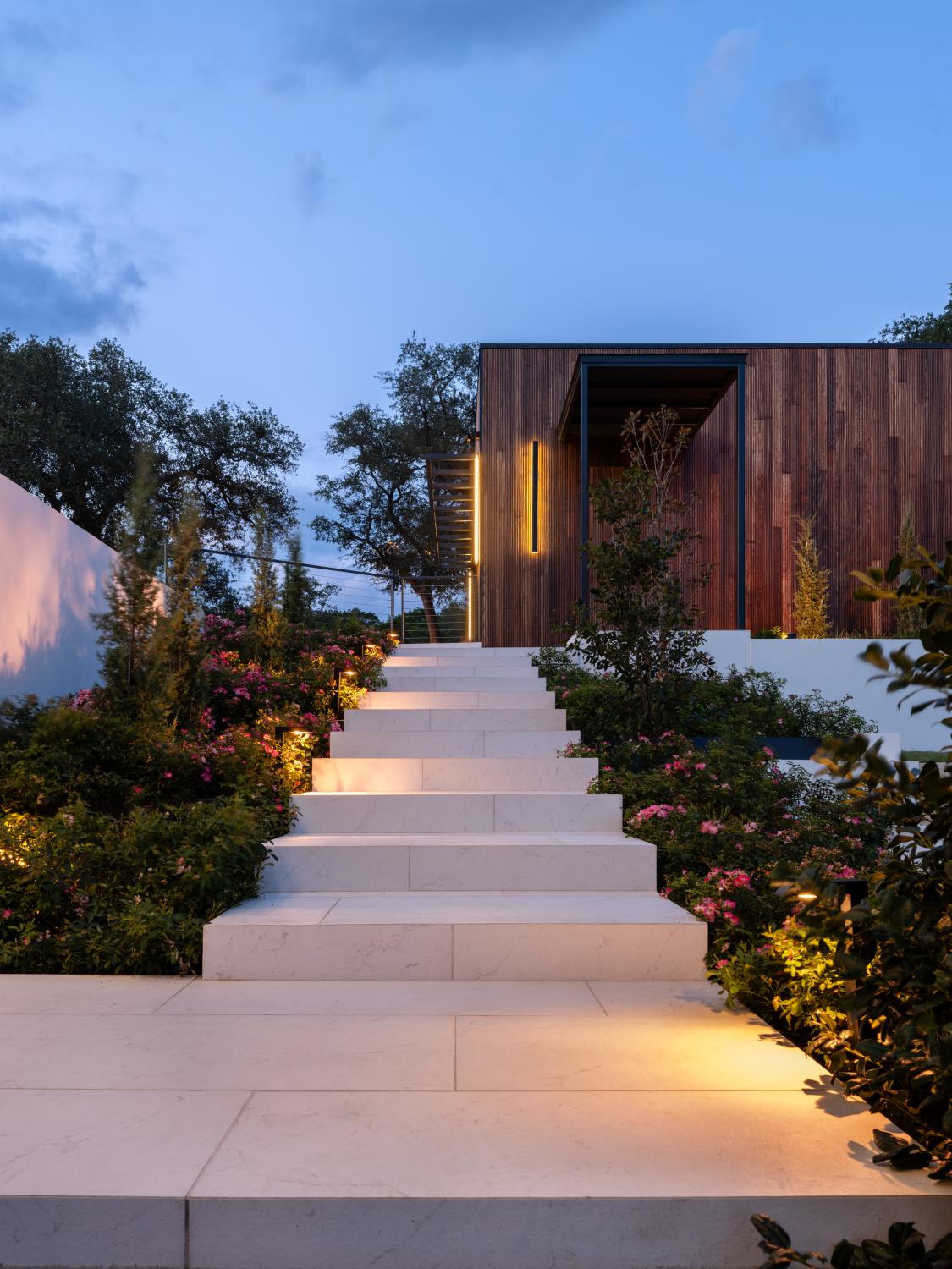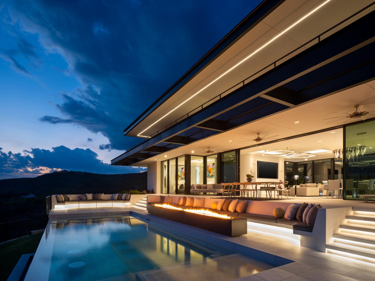 Custom home built on a 200 acre ranch on a bluff high above the Blanco river, just outside of Wimberley, TX. We were responsible for the full structural steel build, all interior and exterior stairs and railings, all steel landscaping elements, and all metal accent work.
