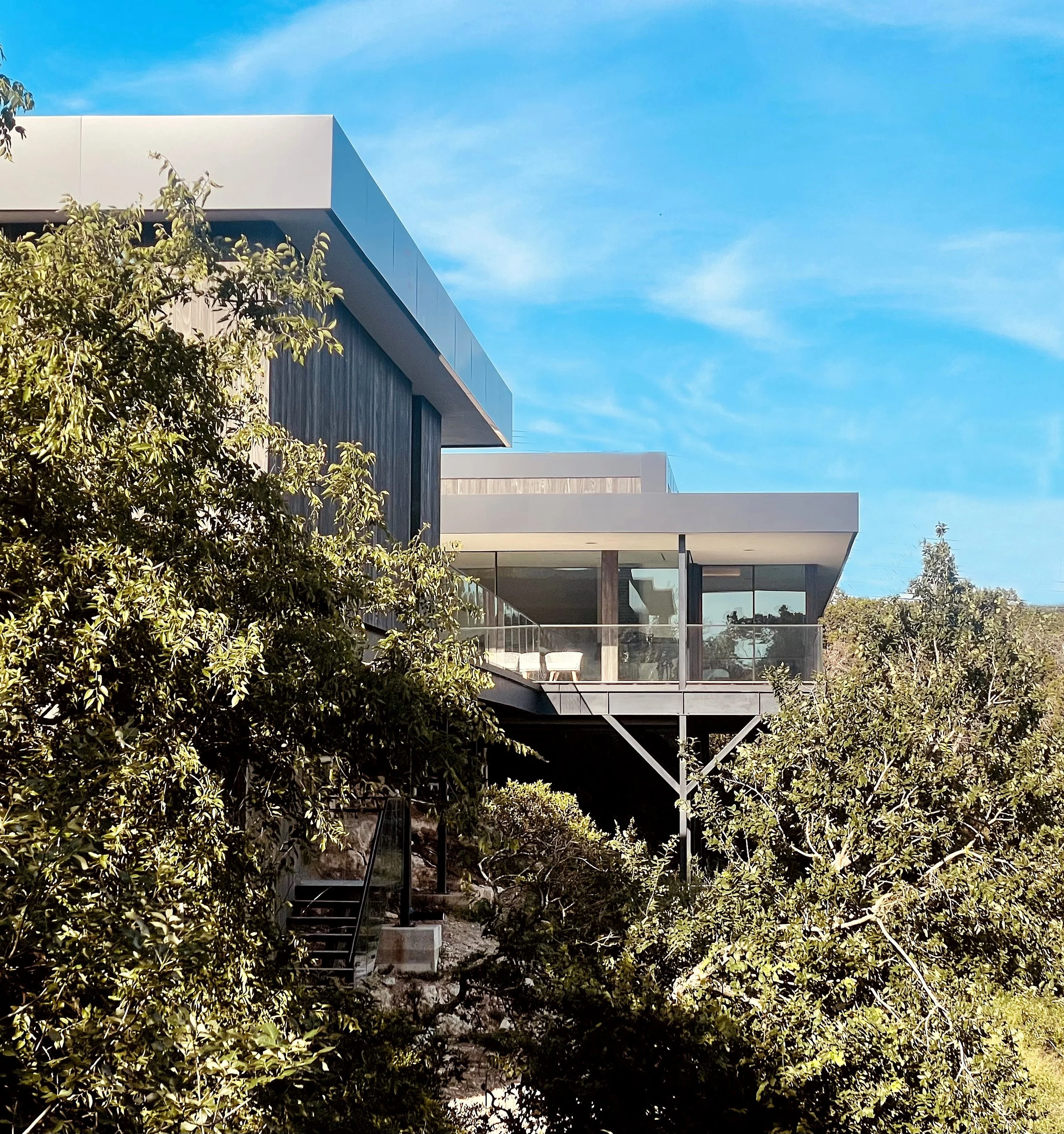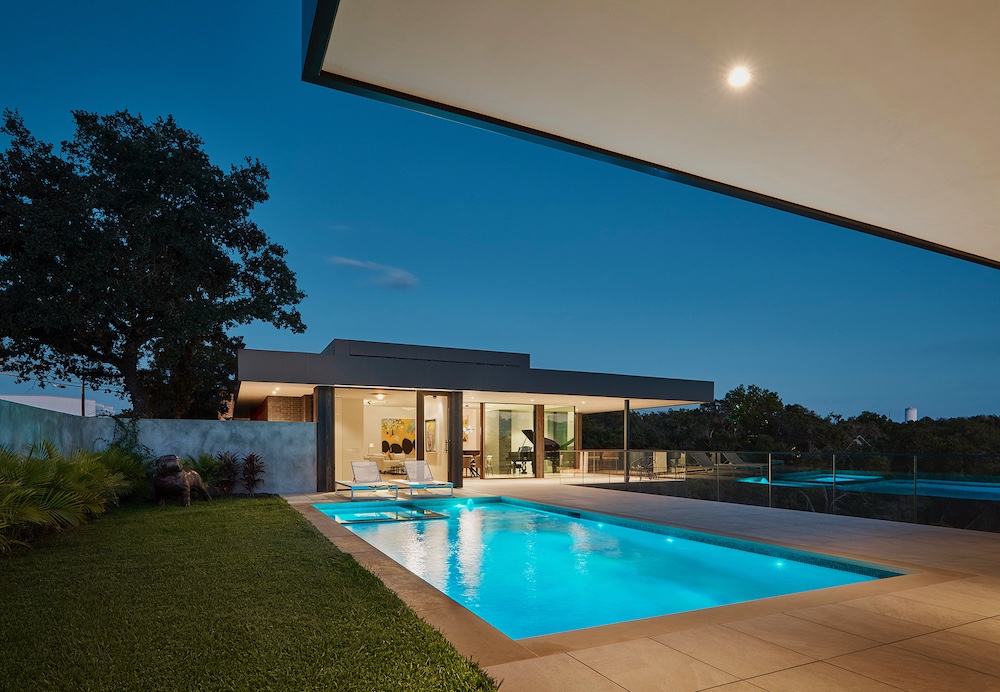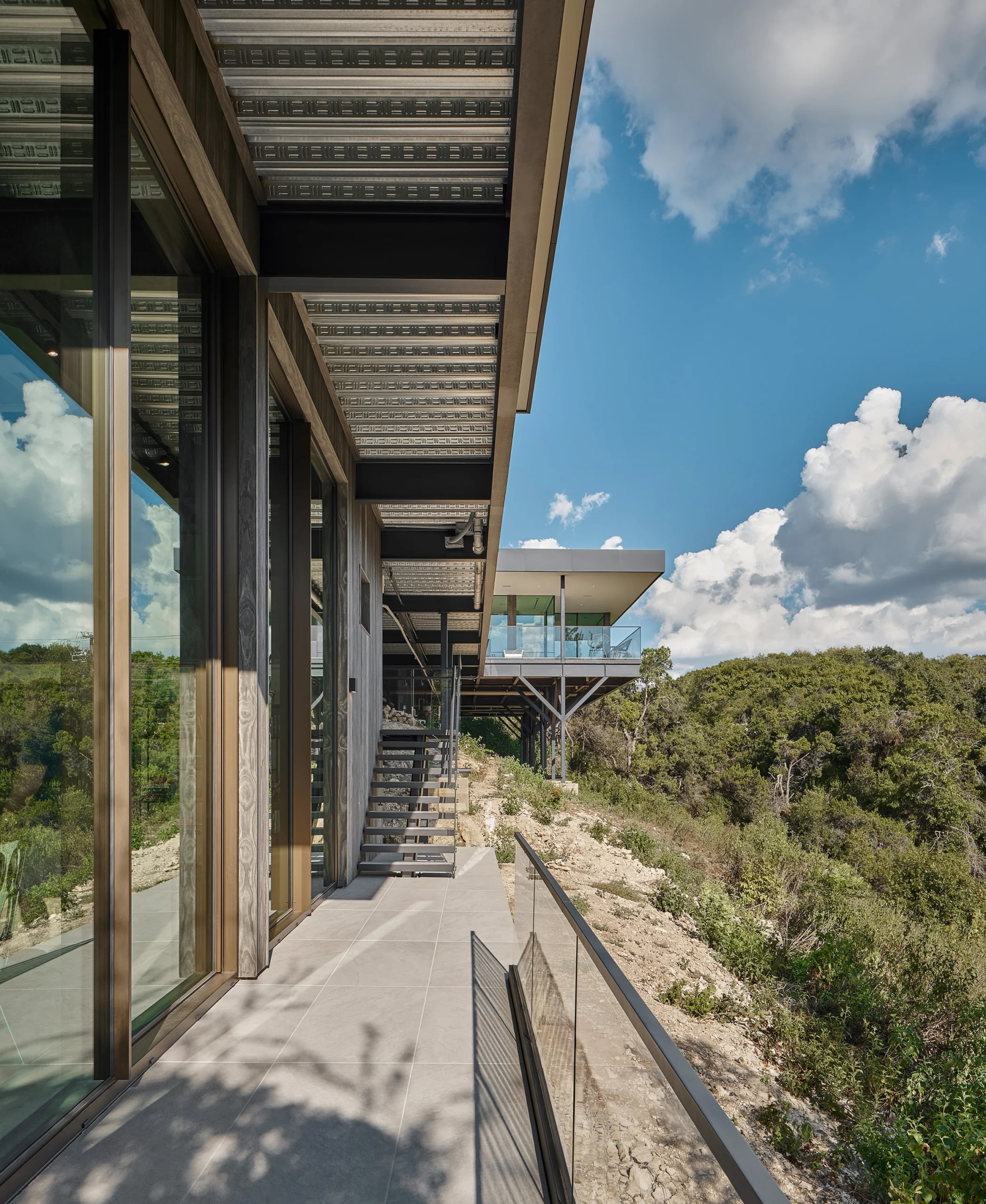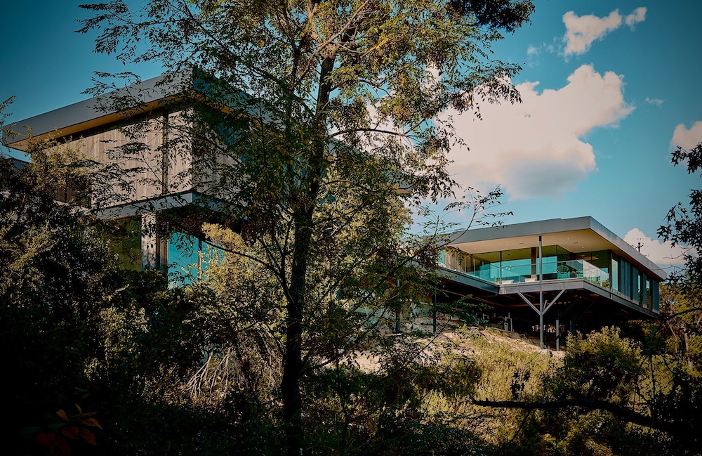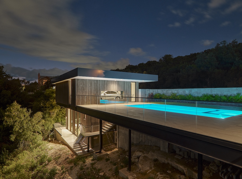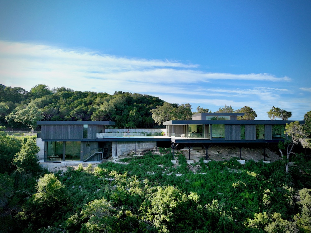 Perched amidst Austin's rugged terrain, Villa Morada stands as a modern interpretation of the California hillside case-study homes. Innovative design overcomes site challenges with vegetated courtyard walls and towering steel piers, some reaching 25 feet in height.