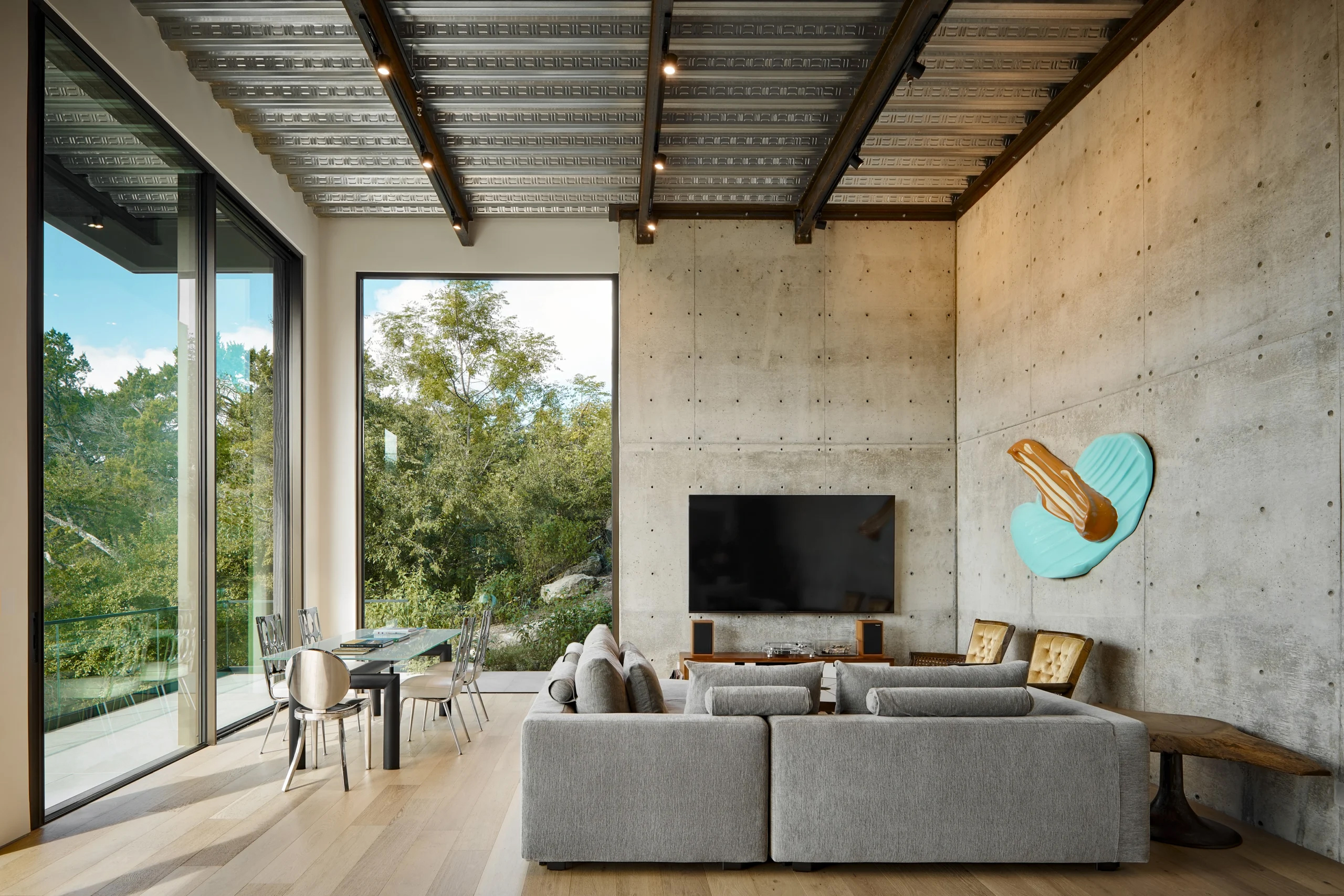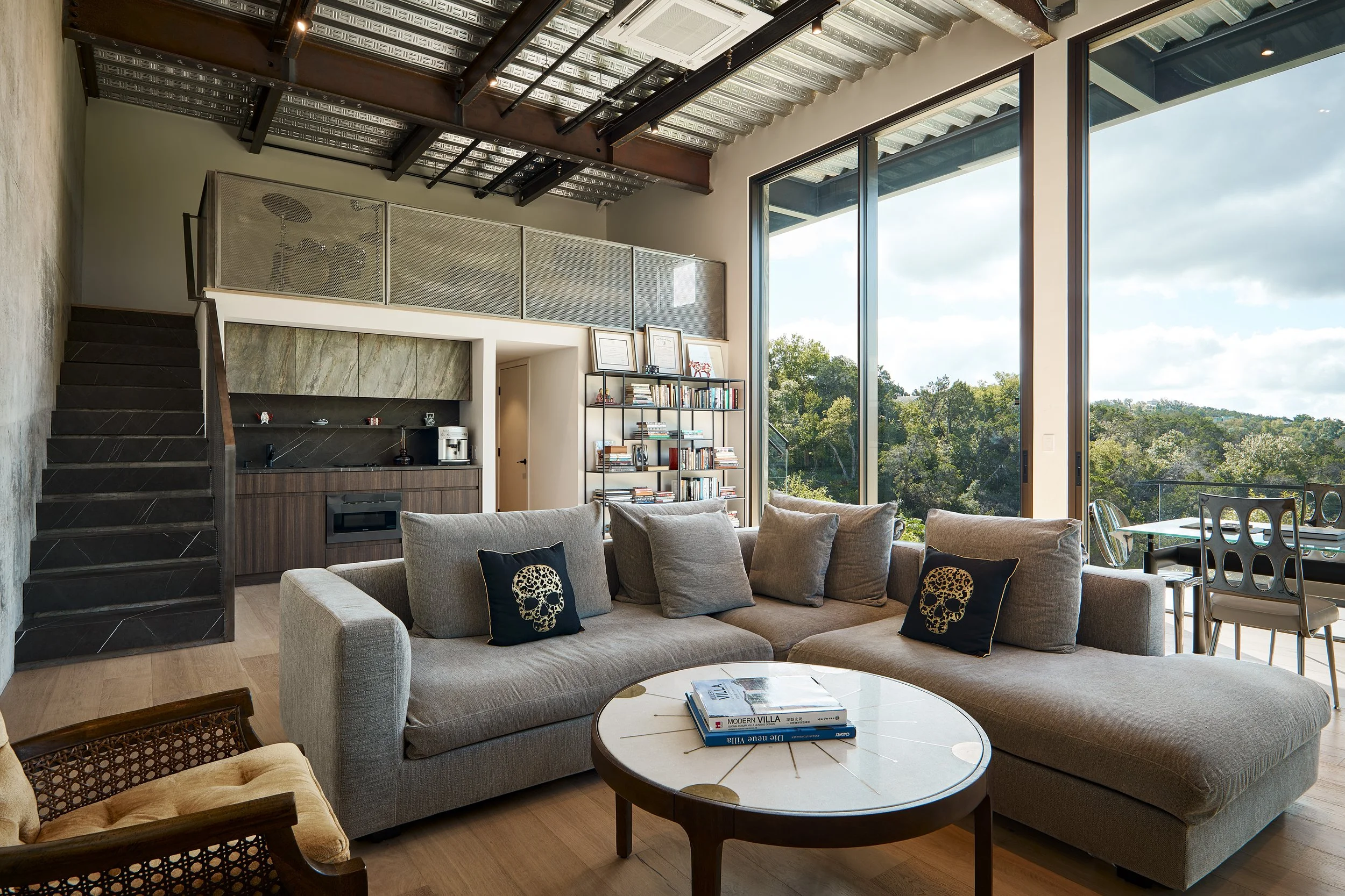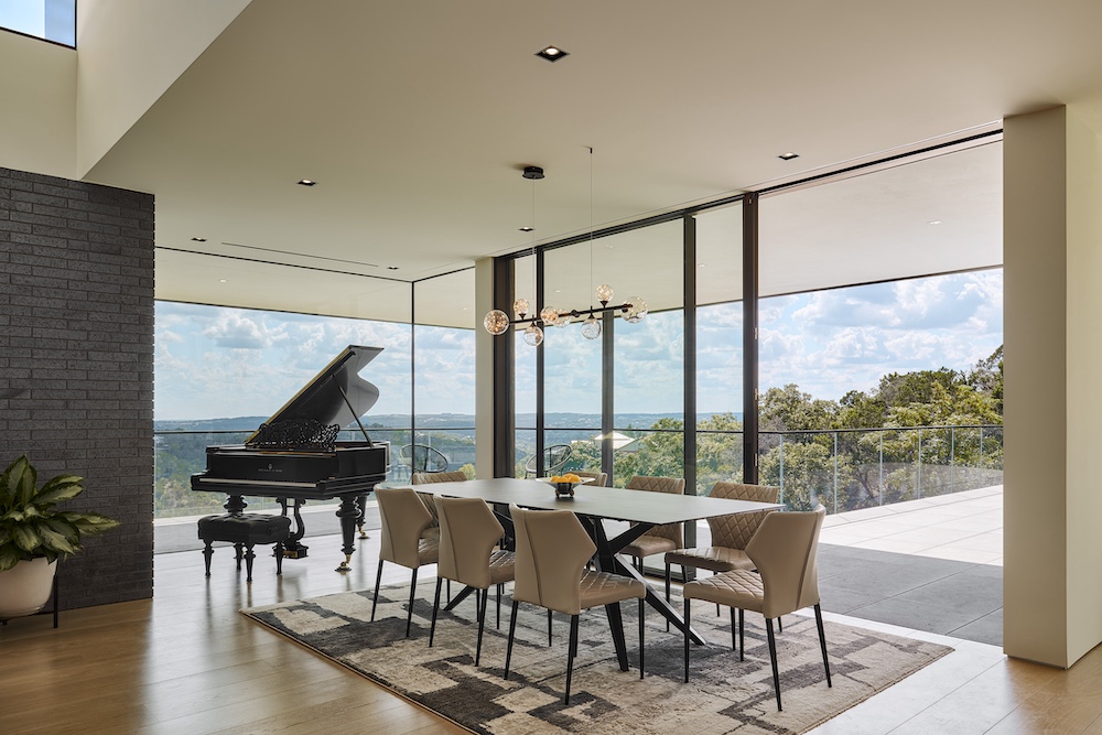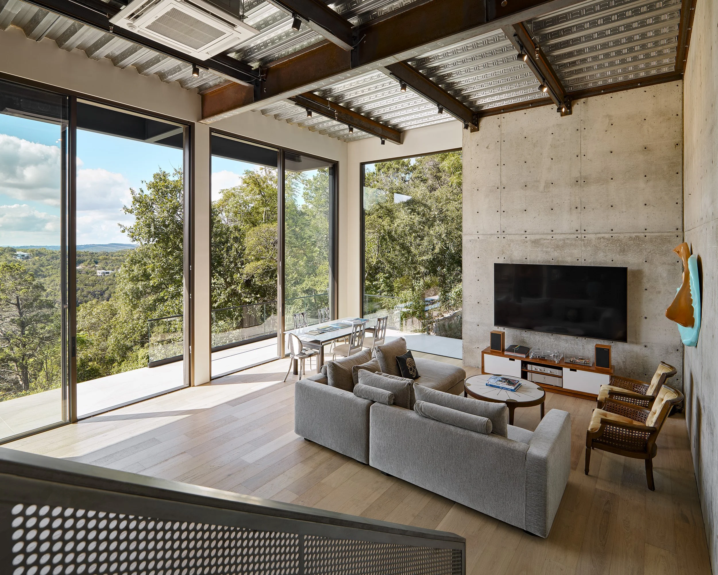 Perched amidst Austin's rugged terrain, Villa Morada stands as a modern interpretation of the California hillside case-study homes. Innovative design overcomes site challenges with vegetated courtyard walls and towering steel piers, some reaching 25 feet in height.